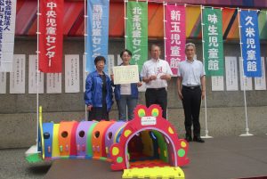 遊具「カエルさんのやわらかトンネル」を寄贈しました。