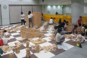 西会場「あそびパーク」には、今回の遊具や、過去に寄贈した遊具(桧の板つみき、アップダウンコースター)も設置され、